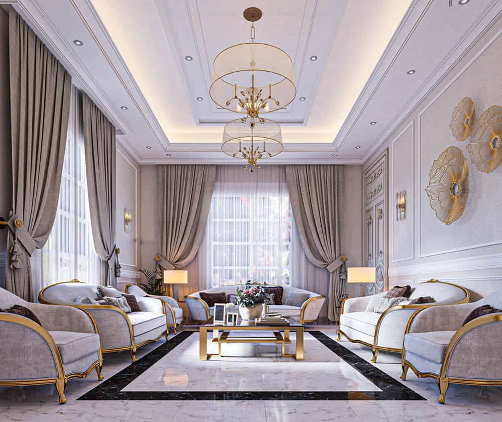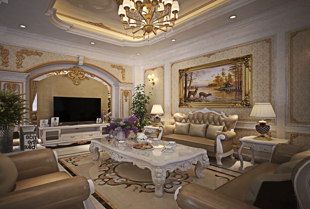 BST 15 + Mẫu Thiết Kế Phòng Khách Phong Cách Tân Cổ Điển