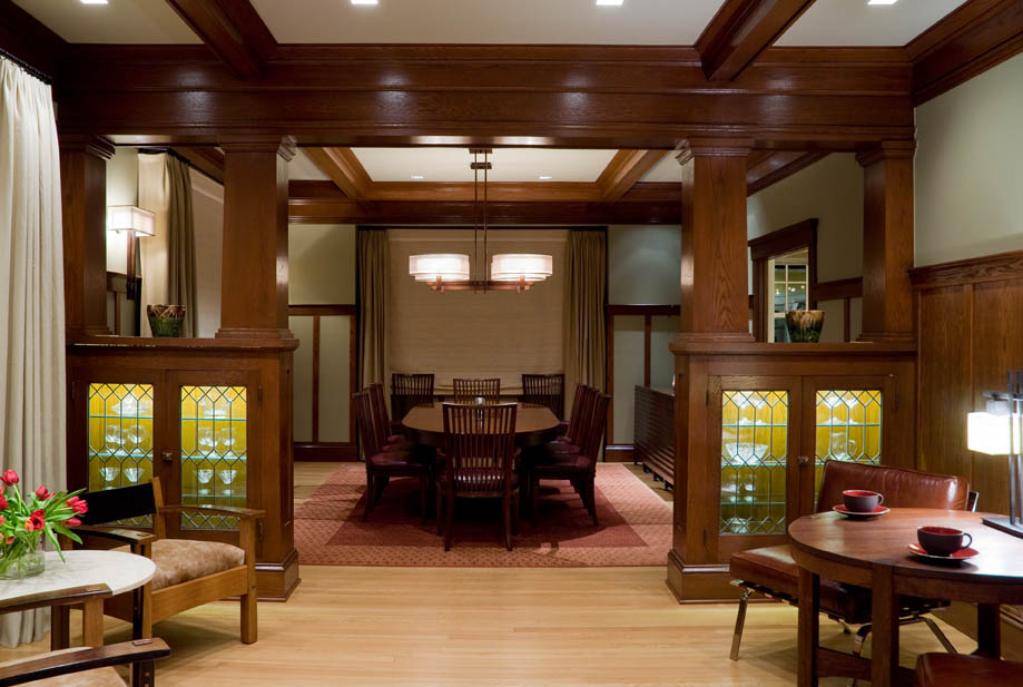 Phòng khách Phong cách Art & Crafts khi thiết kế phòng khách được làm nổi bật với nội thất bằng gỗ, chúng toát lên vẻ đẹp mộc mạc từ bàn tay của những nghệ nhân, chính nét mộc từ gỗ đã làm cho không gian thêm ấm cúng.