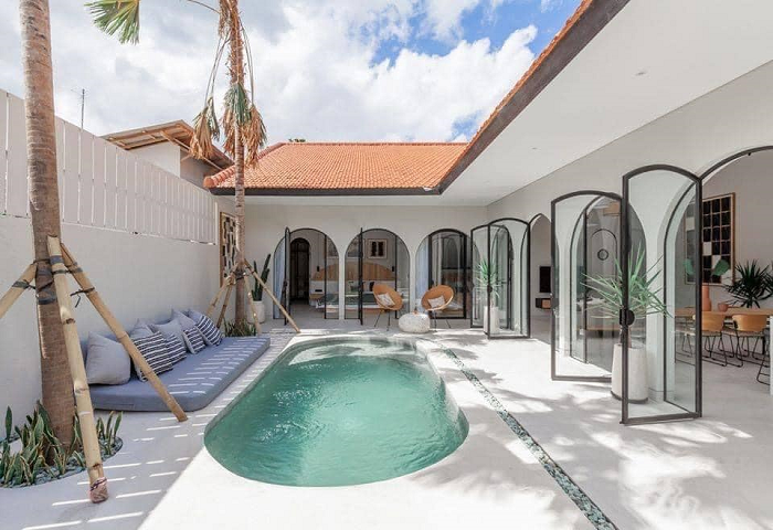- Có sân trong, sân vườn là không gian không mà chúng ta hầu như sẽ bắt gặp trong những căn nhà theo phong cách Địa Trung Hải, ở đây sẽ được đặt nhiều cây cối, hoa lá,.. tạo nên không gian thoáng mát, gần gũi với thiên nhiên.