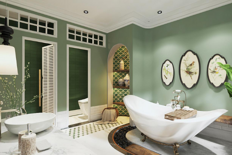 Mẫu Phòng Tắm Đẹp Theo Phong Cách Kiến Trúc Indochine ( Đông Dương )