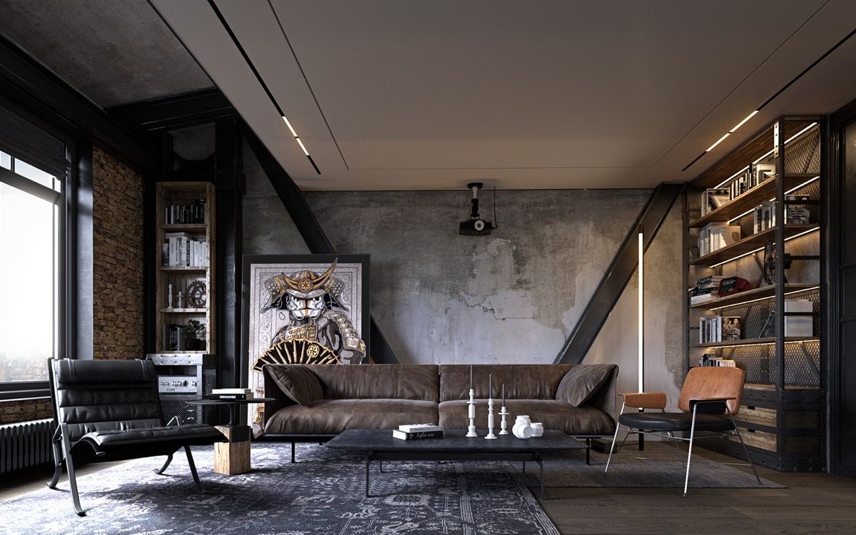 Những Mẫu Phòng Khách thiết kế nội thất phong cách Industrial
