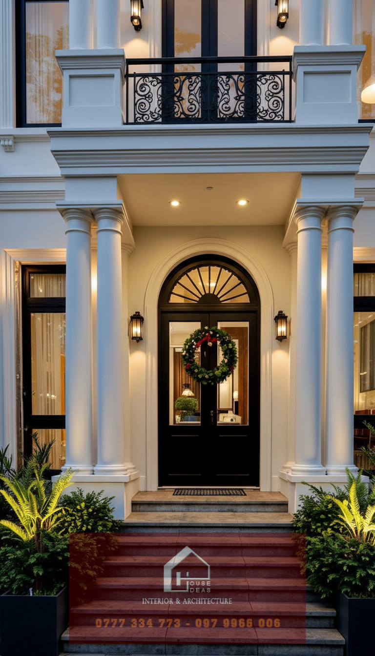 Hệ cột trụ vuông vững chắc, tạo thế cân đối và bề thế cho mặt tiền.
