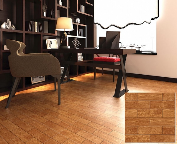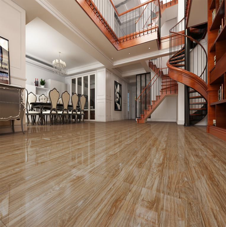 Bề mặt giả gỗ lát nền màu nâu bóng sẽ càng phù hợp với những không gian như phòng khách , chúng giúp cho việc lau dọn, vệ sinh các vết bẩn một cách dễ dàng.
