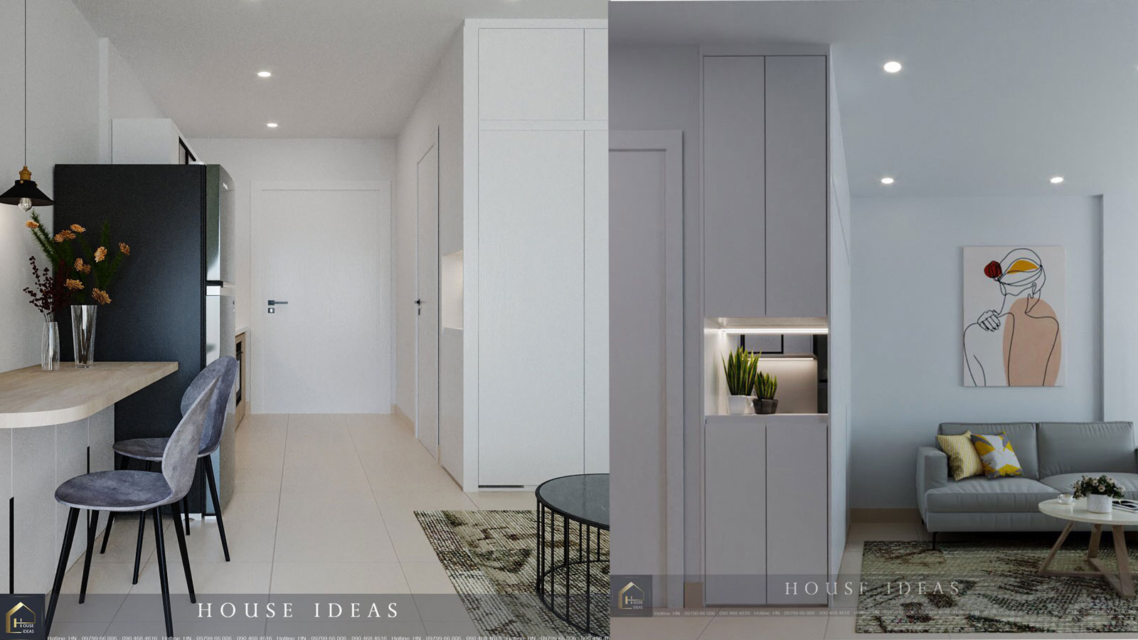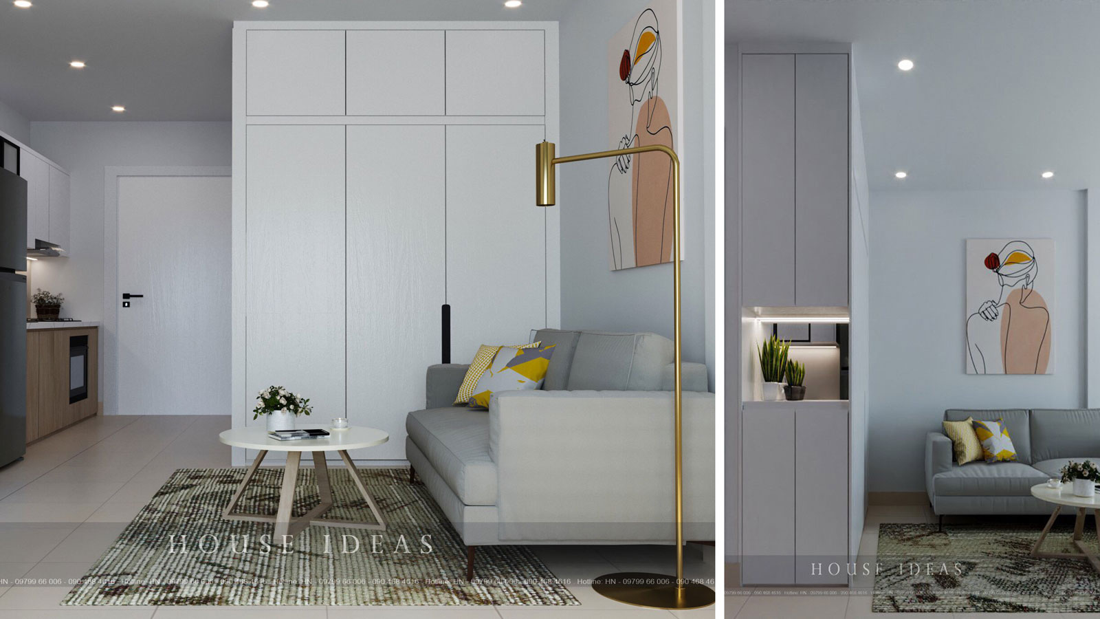 Trên đây là mẫu thiết kế nội thất căn hộ studio 28m2 tại Vinhomes Ocean Park được thực hiện bởi các kiến trúc sư của Nội thất House Ideas. Nếu quý khách hàng đang băn khoăn và chưa tìm được đơn vị thiết kế, thi công nội thất, đừng ngần ngại liên hệ với chúng tôi qua hotline để được tư vấn và báo giá chi tiết.