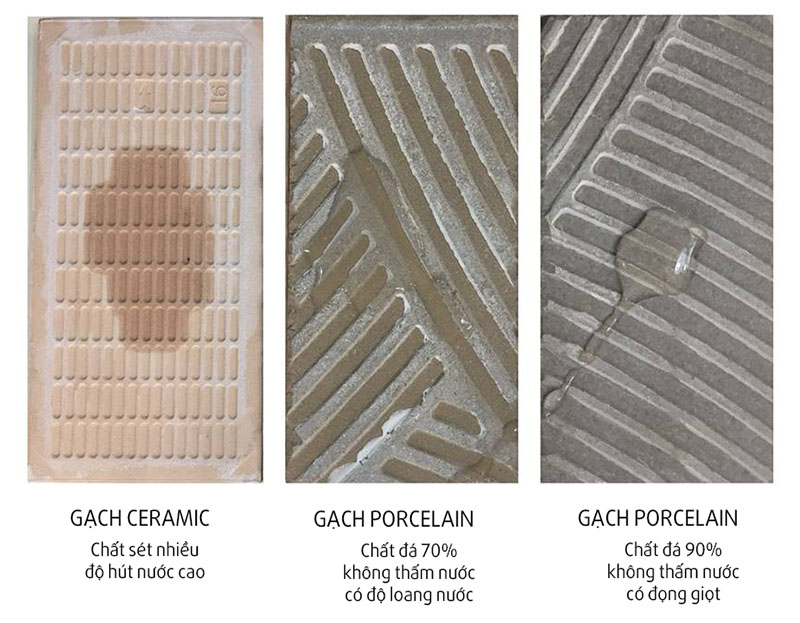 Độ thấm hút nước của gạch Ceramic, gạch Granite và gạch Porcelain