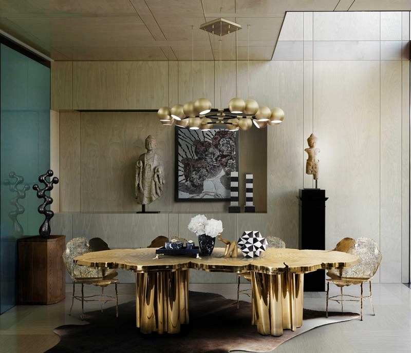 Không khó khi chúng ta bắt gặp những bộ dao dĩa bằng vàng, thủy tinh cùng một bộ bàn ghế bằng gỗ quý tại phòng bếp. Đây là điều dễ nhận thấy, và khó lẫn vào với các phong cách khác. Bởi vương giả chính là điều phong cách Art Deco hướng tới