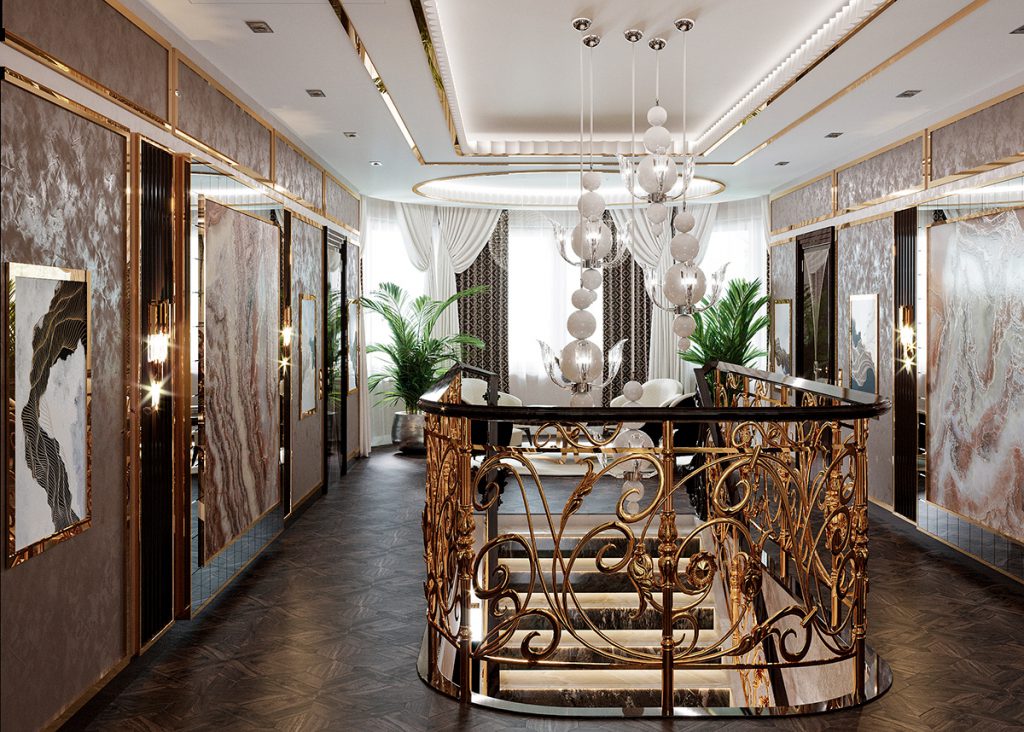 Không gian phong cách Art Deco với những đường khối mạnh mẽ trong hình học được ứng dụng một cách triệt, tạo nên sự mạnh mẽ, cá tính, độc đáo. Điều này khiến cho lối kiến trúc vẫn thể hiện được sự hiện đại nhưng không làm mất đi các nét vương giả.
