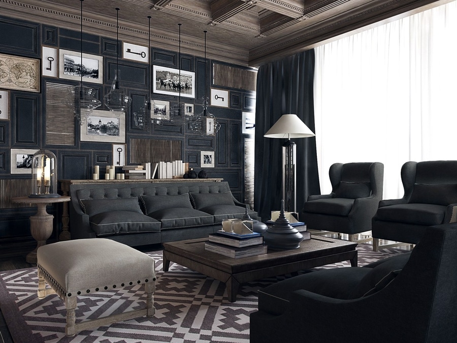 Như chúng ta đã biết, màu sắc đem lại sự quý phái, huyền bí được trao cho màu đen. Chính vì thế ở phong cách Art Deco màu đen có thể được sử dụng làm tone màu chính hoặc cũng có thể làm màu nền cho căn phòng, nhưng bắt buộc phải có sự góp mặt của màu đen.