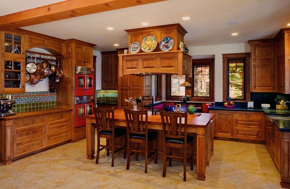 Phòng bếp và phòng ăn được thiết kế trong cùng một không gian, vừa tiết kiệm được điện tích, vừa tạo không khí ấm cúng cho gia đình. Đây cũng là một điều dễ nhận thấy của phong cách nội thất Art & Crafts khi thi công nhà bếp.