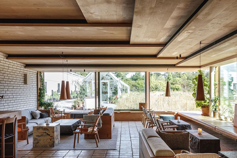 Phong cách này có điểm nhấn là gỗ cùng kết hợp với các thanh kim loại, vừa tạo điểm nhấn, vừa làm vật nâng đỡ, điểm tựa cho các phần vật liệu phía trên.