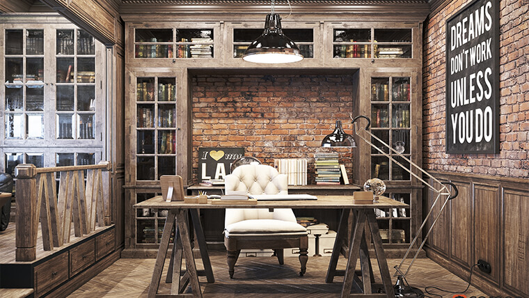 Những bức tường bằng đá tự nhiên hay những xà gầm bằng gỗ lộ ra khỏi trần nhà... là một không gian đậm chất Rustic.