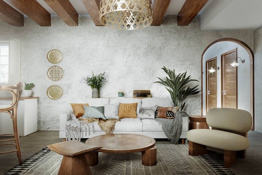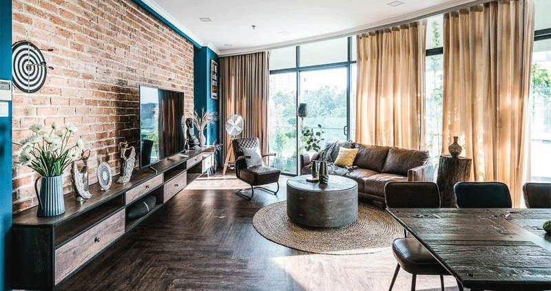 thiết kế phong cách rustic cho phòng khách,