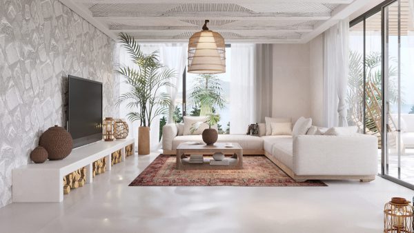 2.4 Sử dụng các loại vải chất liệu thiên nhiên và thảm thô đơn giản