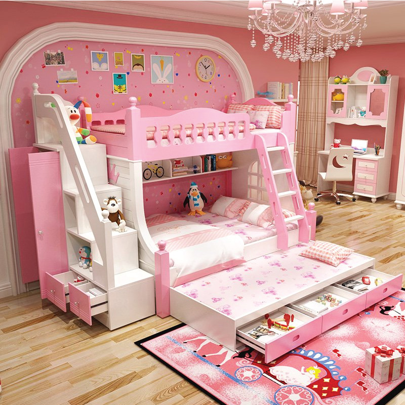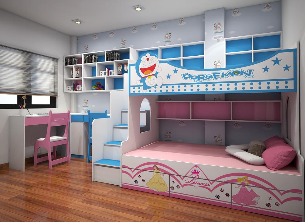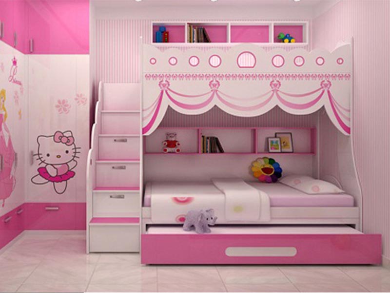 Mẫu phong ngủ giường tầng cho hai bé gái khoảng dưới 10 tuổi