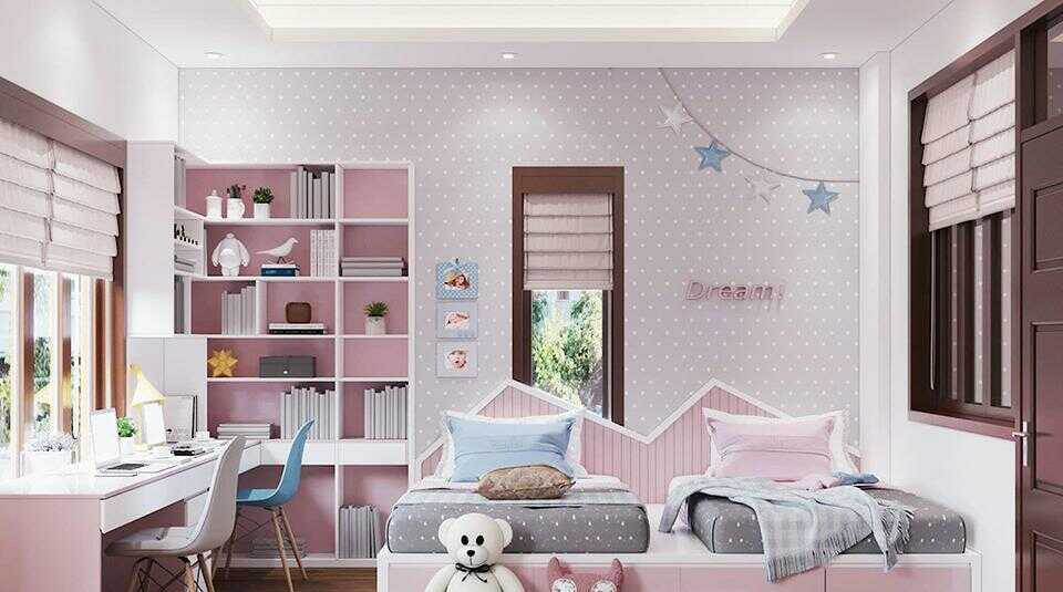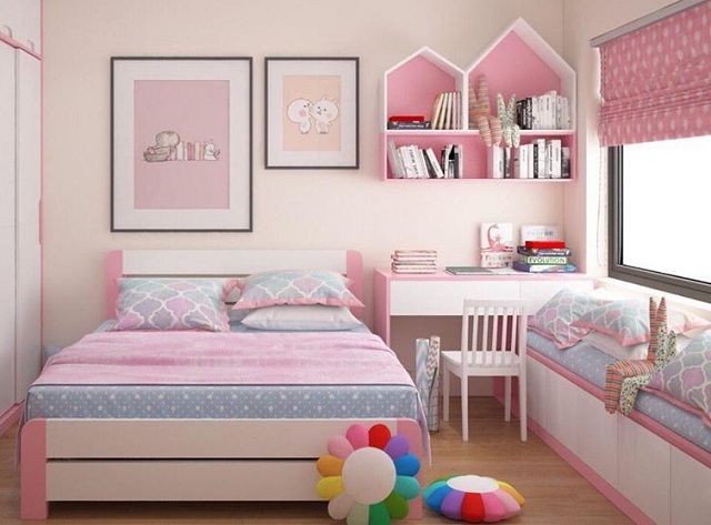 Màu sắc chủ đạo của căn phòng cho các bé gái sẽ màu tone màu trắng và hồng luôn được các cô công chúa đặc biệt ưa thích.