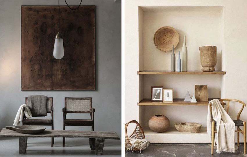 Phong cách nội thất wabi-sabi hướng đến sự tối giản, tập trung vào chính những người sống trong không gian đó hơn bất cứ yếu tố nào khác. Đồ đạc được lựa chọn ở phong cách này là sự kết hợp của bayếu tố: Tiện ích, vẻ đẹp và hoài cổ.