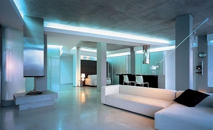Một điểm dễ nhận thấy nữa ở phong cách này chính là hiệu ứng ánh sáng, yếu tố kỹ thuật hiện đại là điểm nhấn. Việc sử dụng đèn nội thất âm tương ứng với ánh sáng khác nhau tạo nên một bức tranh đa sắc.