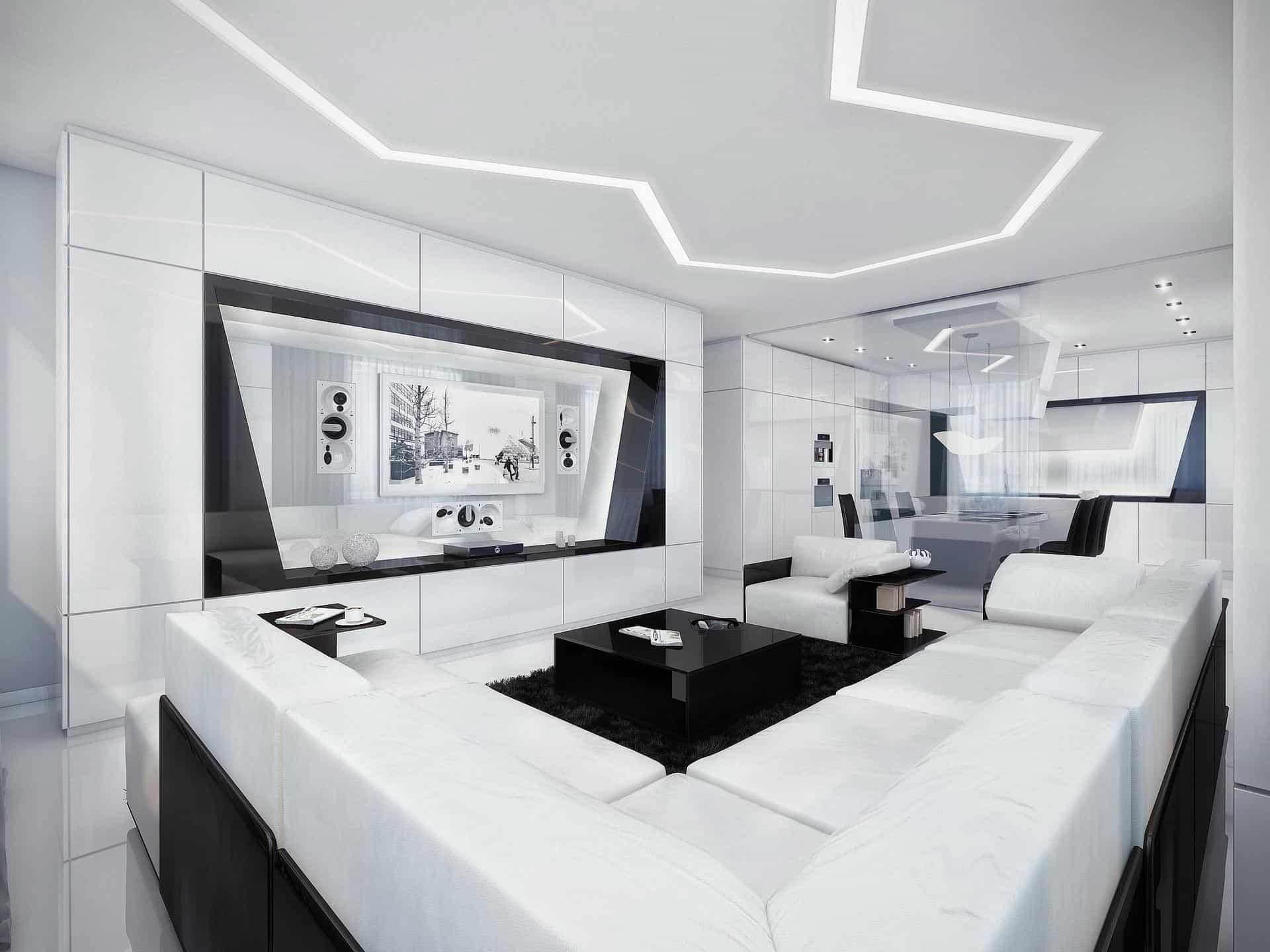 Là đặc trưng nổi bật của phong cách thiết kế nội thất Hitech.Việc kết hợp giữa ứng dụng công nghệ cao và không gian kiến trúc đã tạo ra một sự hài hòa, hầu như các món đồ nội thất được sử dụng đều có công năng riêng biệt.