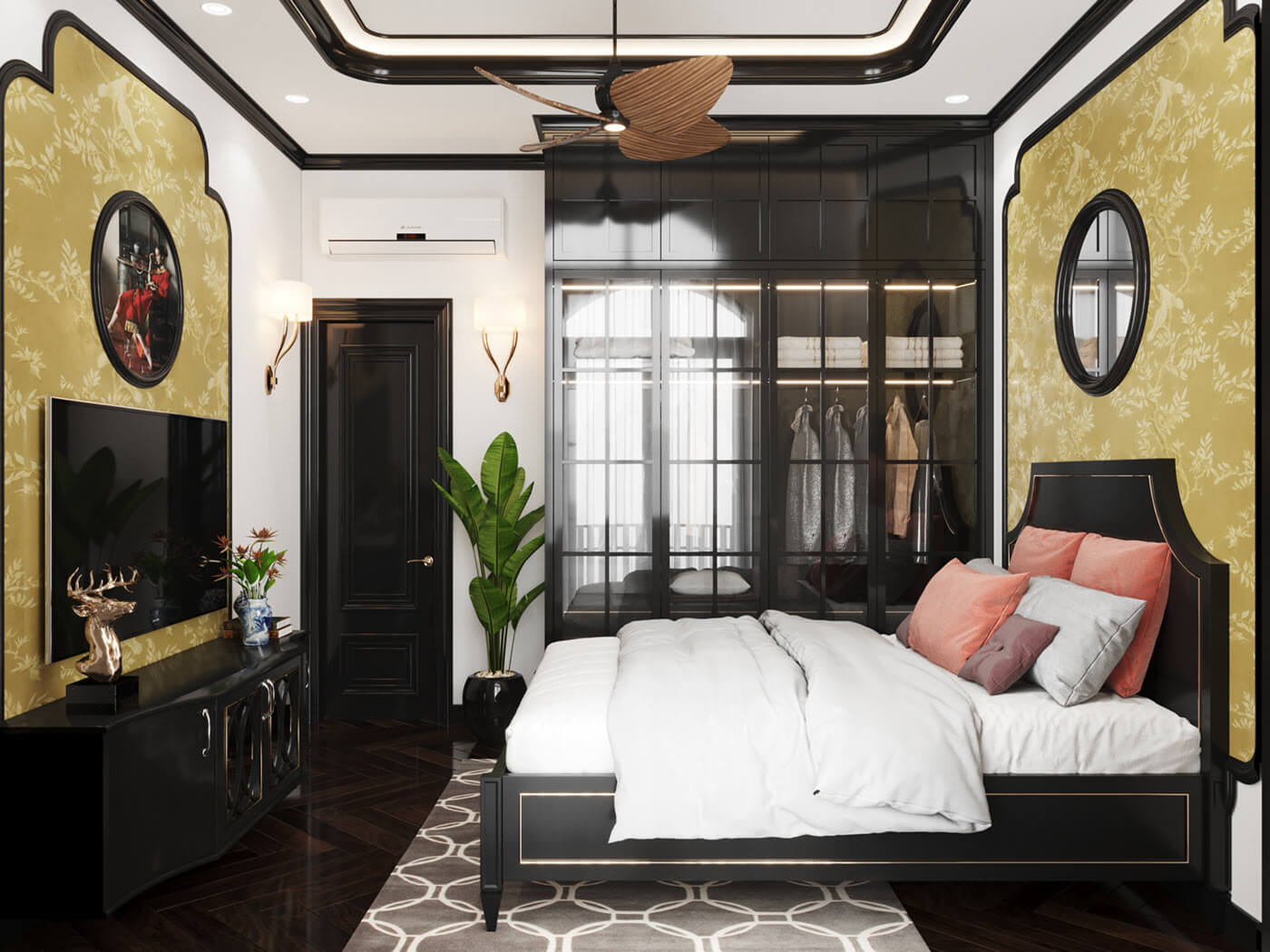 Màu sắc trắng, đen tạo sự sang trọng cho phòng ngủ