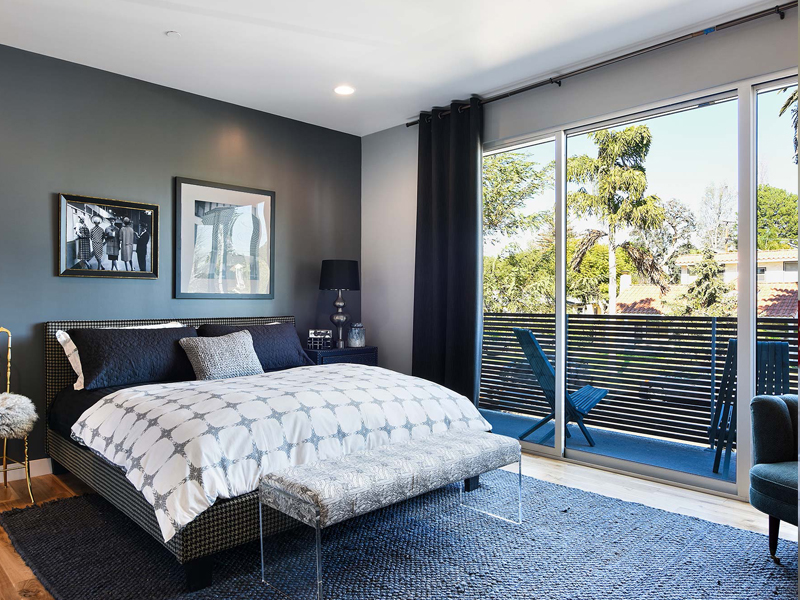 Màu xanh dương và ban công của phòng khiến chúng ta thấy một không gian gần gũi với thiên nhiên