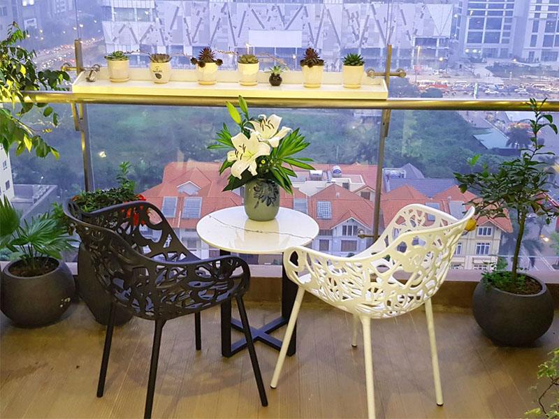 Nếu Ban công thiết kế không có cửa kính chắn thì bạn không nên sắm ghế nệm nhé, thay vào đó bạn nên có những lựa chọn ổn hơn như ghế ghỗ, ghế mây hay ghế bằng chất liệu nhựa, bằng sắt.